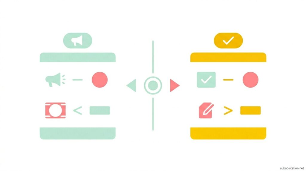 ここでは、広告付きスタンダードとスタンダードのどちらを選ぶべきかを最小限の判断軸で整理します。細かい違いをすべて比較しなくても、自分が重視するポイントを1つ決めるだけで選択は絞れます。