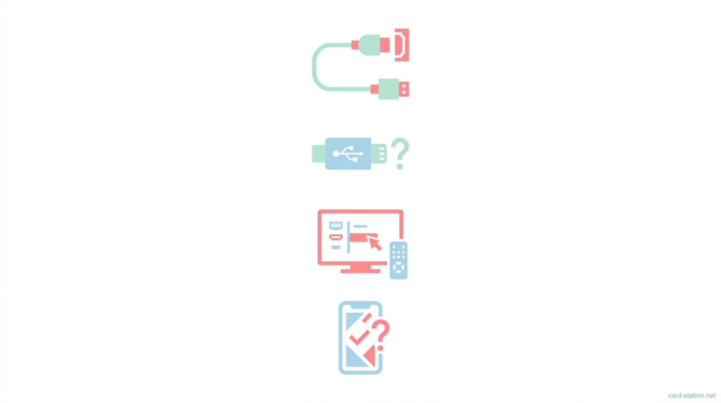 具体的には、使っているケーブルやアダプタがその機種に対応しているか、スマホ自体が映像出力に対応している仕様か、さらにテレビ側で正しいHDMI入力に切り替わっているかを1つずつ確認することで、原因を特定できます。
